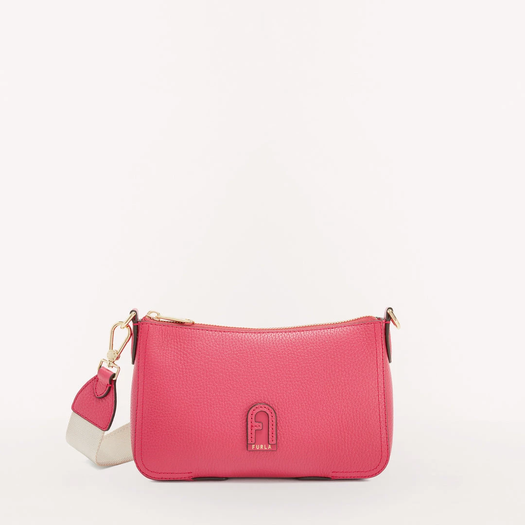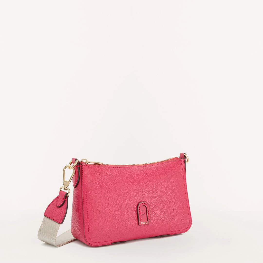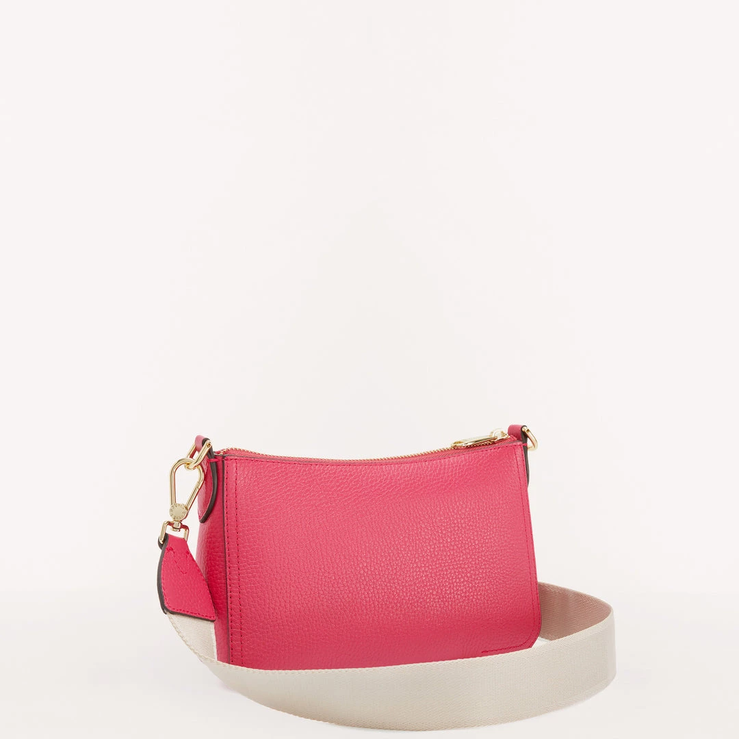 Furla Atena is a small crossbody bag made from grained Keria calfskin. This piece, complete with a ribbon shoulder strap that is adjustable and removable via the clasps at the sides, features the Arch logo with embossed gold-finish Furla lettering punched on the front. The perfect accessory for a sporty, casual look.