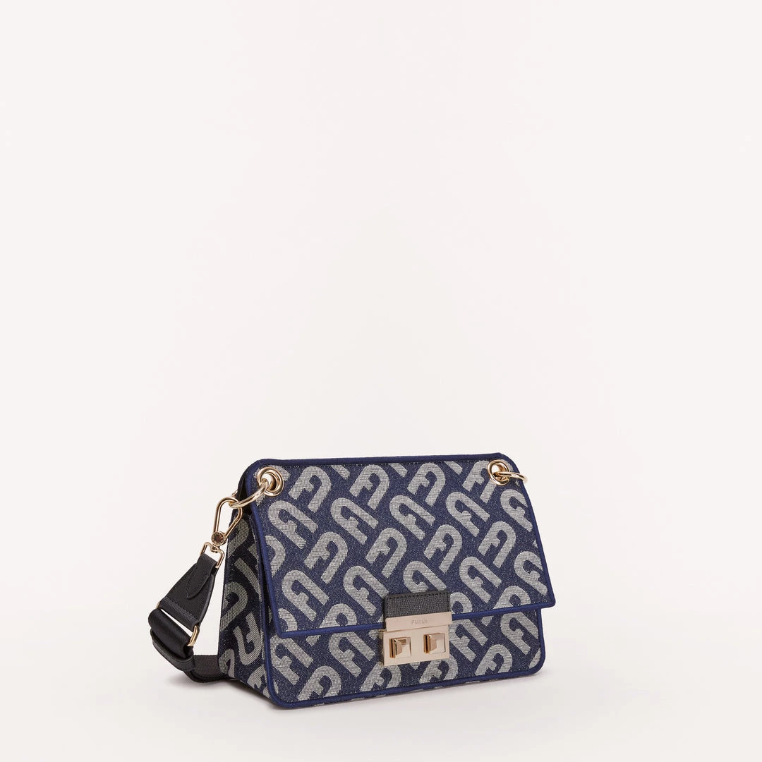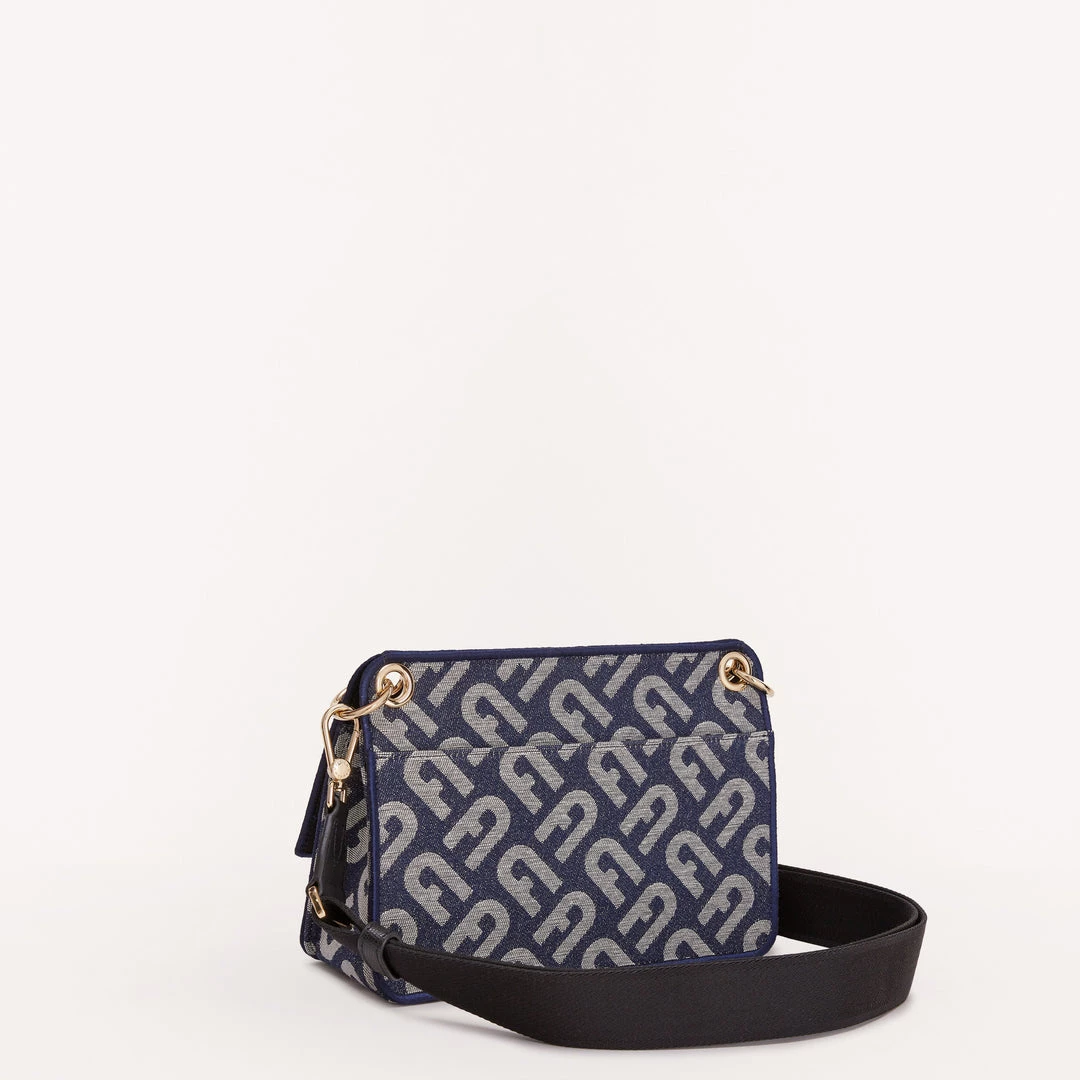 Furla Bella is a small crossbody bag made of cotton jacquard denim fabric with an Arch logo. The accessory can also be comfortably worn on the shoulder thanks to the adjustable strap in ribbon that adapts to your needs. The open outer back pocket allows you to easily access your personal belongings.