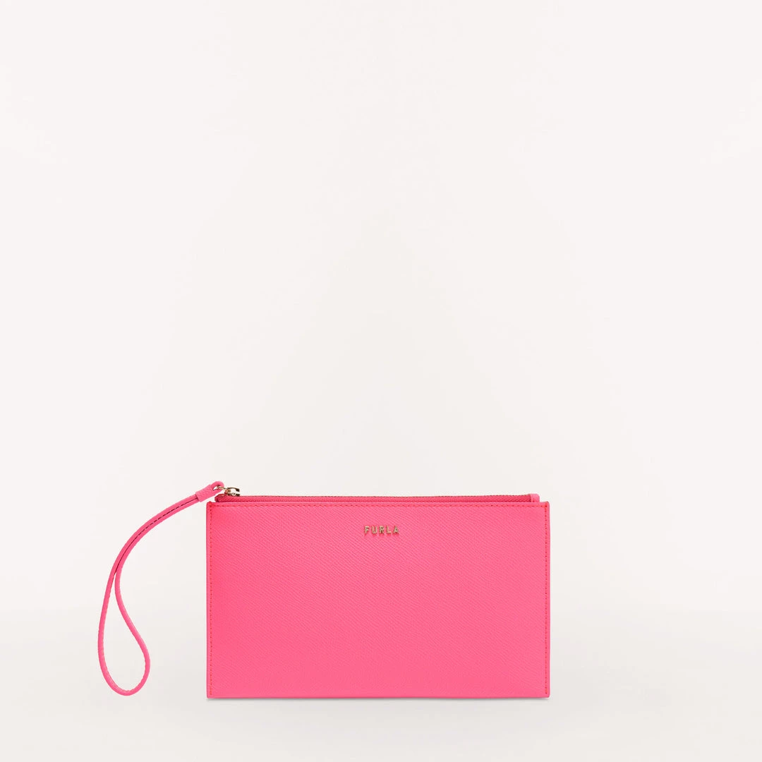 Furla Classic is a large envelope bag made of Andromeda calfskin. The model is designed to safely store your belongings and phone thanks to the top zip closure. Its leather side strap also allows it to be worn comfortably on the wrist.