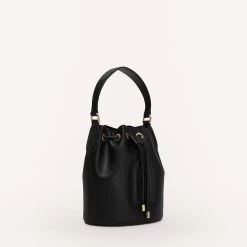 Furla Dafne is a small bucket bag made of grained Keria calfskin. The model features a practical outer pocket on the front for you to store your personal belongings with ease. Thanks to the adjustable and removable leather strap with side snap hooks, it can be comfortably worn on the shoulder or as a crossbody.