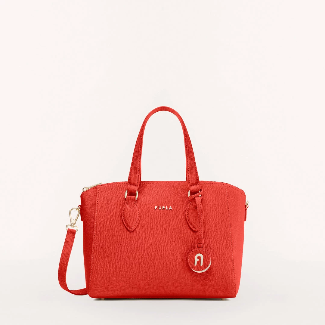 Furla Minerva is a small satchel bag made from Andromeda calfskin. This piece comes with a handy adjustable and removable leather shoulder strap for on-the-shoulder or crossbody wear. The perfect accessory for keeping personal belongings with you during your free time.